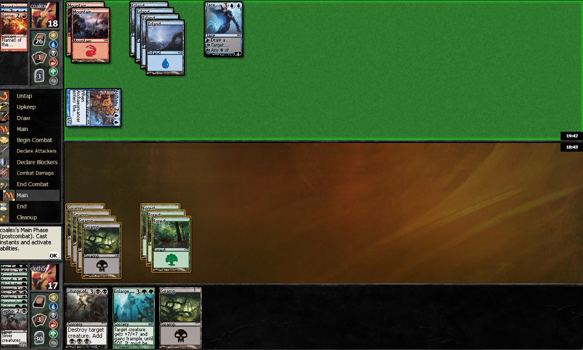 I manage to take game one with surprising ease, although my opponent later admits that he got mana flooded.