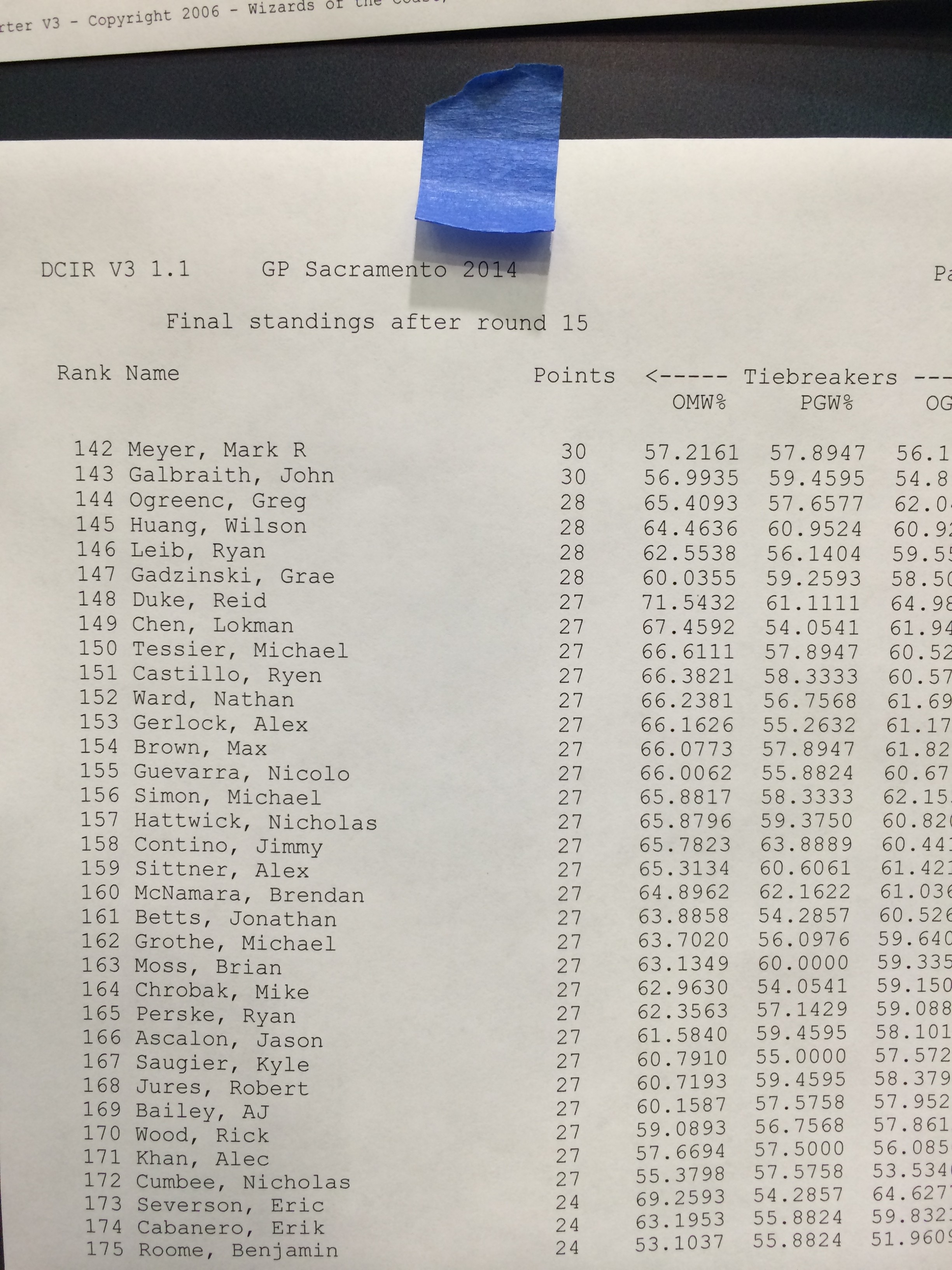 9-6 in matches. I ended up in 161st place. That’s top ten percent! Here’s a shot of the final standings for the 9-6 range, taken during the top 8 draft. Apparently I lost a place later on.