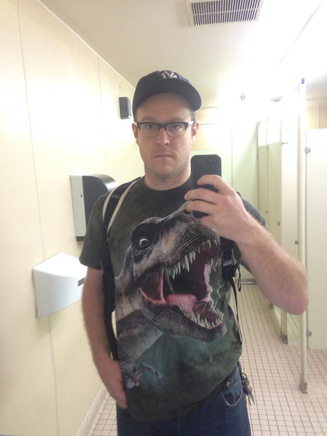 Anyway, I woke up Saturday morning, put on my T-Rex shirt an ex-girlfriend gave me, and took a selfie in the shitter at the Dulles Expo Center. It was game time.