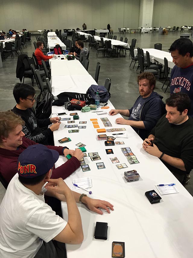 The lighting in the Music City Convention center was inspired Friday afternoon as we sorted through our sealed pool. We’d signed up for a “Grinder” that could earn us zero byes because no one gets a bye at Team Sealed GPs.