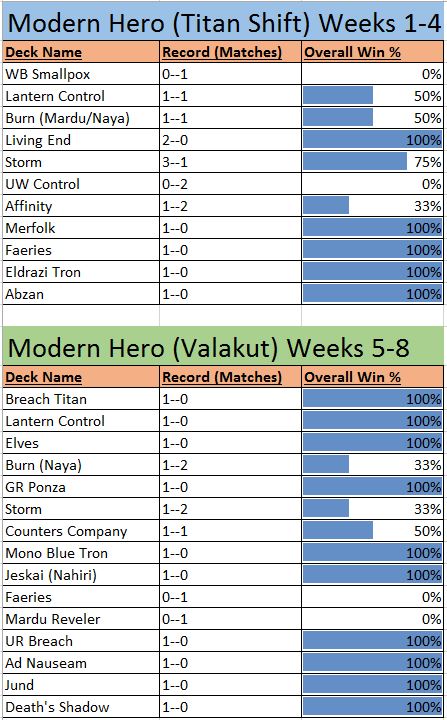 With a sample size this small, I don’t put much stock in these findings, but given that I enjoy data, I’ve decided to share this with you. In 20 rounds with Titan Shift I had a final record of 12-8 and in 20 rounds with Valakut Breach I had a final record of 13-7. I played against Storm the most times with both decks and had a 75% win percentage against the deck with Titan Shift but a 33% win percentage with Valakut Breach. This is somewhat surprising given that the Breach decks tend to be a little faster but I also played two sideboard Witchbane Orb in the Shift list so that may be a consideration.