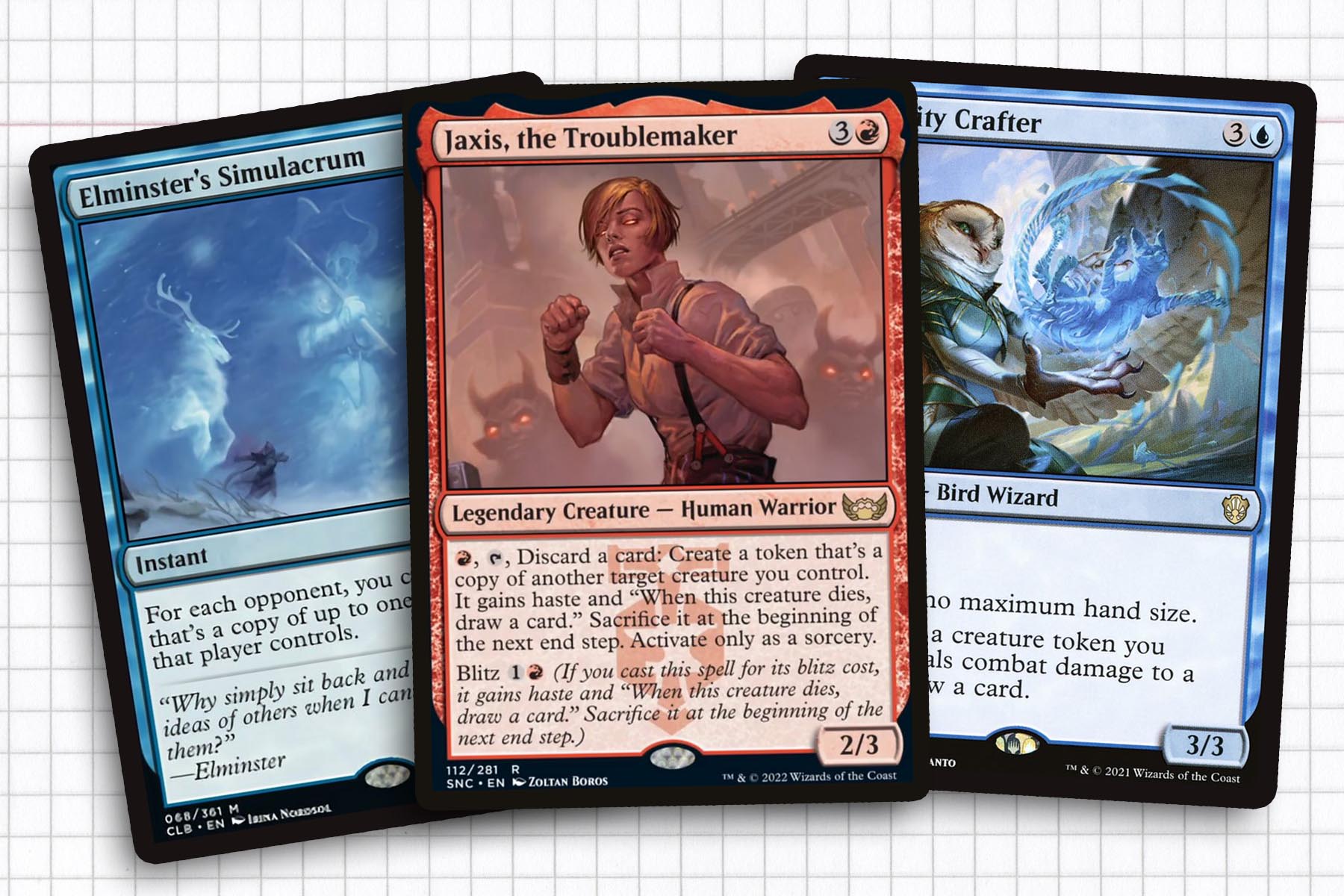 And then this Spring saw the release of the Streets of New Capenna products, giving us Jaxis, the Troublemaker—whom we will highlight in a moment—Determined Iteration, and Spiteful Repossession. Determined Iteration brought an interesting twist to the populate mechanic that I hadn’t considered in the design space before, allowing for us to not only get an extra body every turn, but also another enter the battlefield effect for any creature cards we may have copied. Then we have Spiteful Repossession, which spoke to the lack of land ramp available to the deck, while also providing a damage outlet. Honestly, sometimes an extra three to five damage on any one player is enough to change the behavior of the table, while also not leaving me as the easy responsible party.