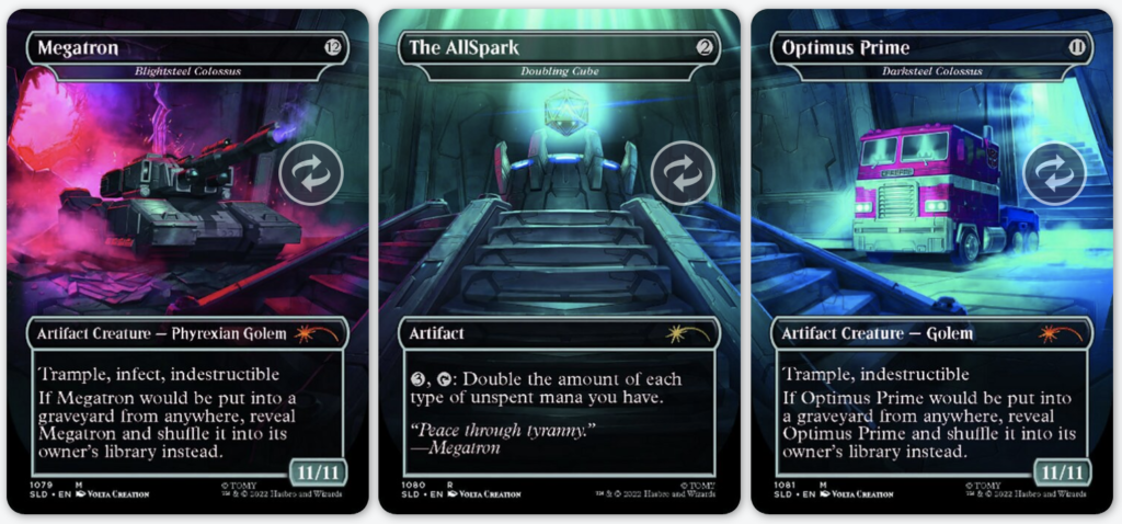 This is a stunning triptych no matter which side you’ve flipped it to. These will make a beautiful addition to any cube or Commander collection, or you could even have some fun and Tinker out Megatron to close out games of Vintage.