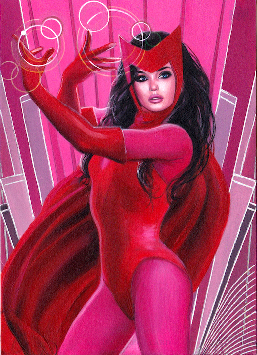 Week 41 Elektra (5” x 7”), Week 42 Adam Warlock, Week 43 Scarlet Witch (5” x 7”), Week 44 Nico Minoru & Hulkling, Week 45 X-23, Week 46 Daredevil (5” x 7”). Week 47 Snowbird, Week 48 Elektra, Week 49 Nightmare & Dr. Strange (5” x 7”), Week 50 Silk, Black Widow (5” x 7”) Week 52 Sabretooth