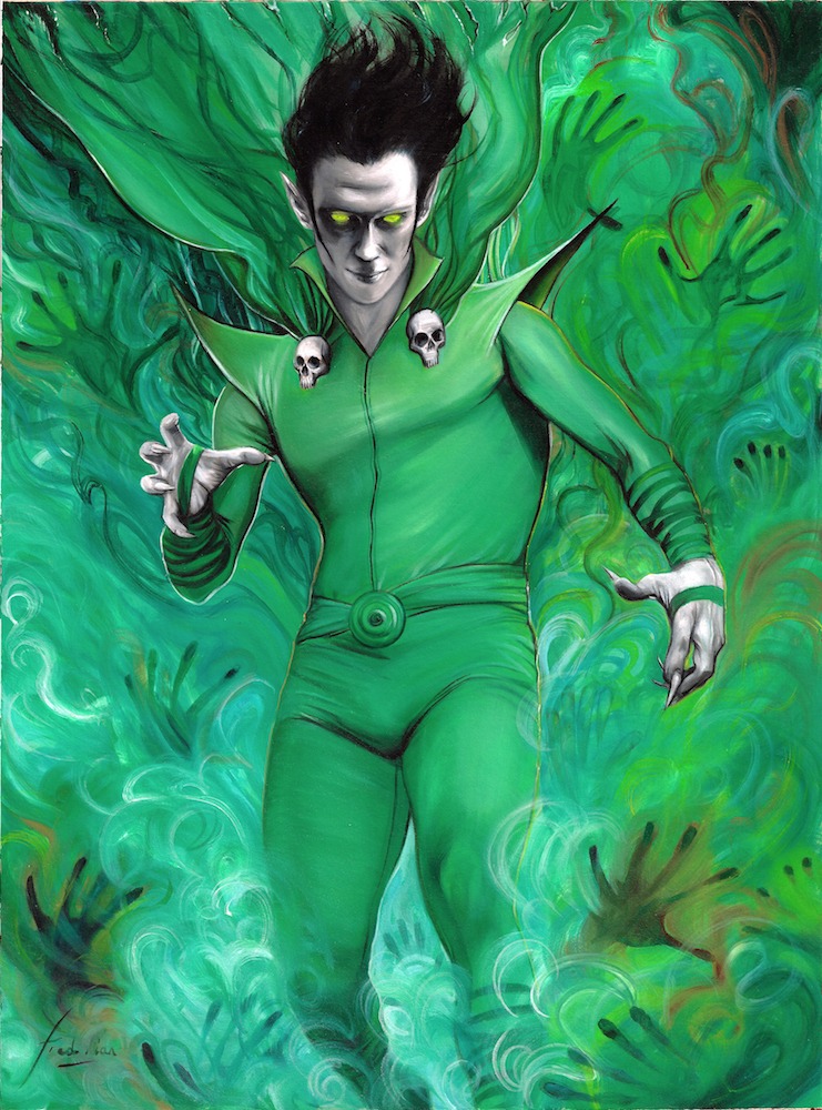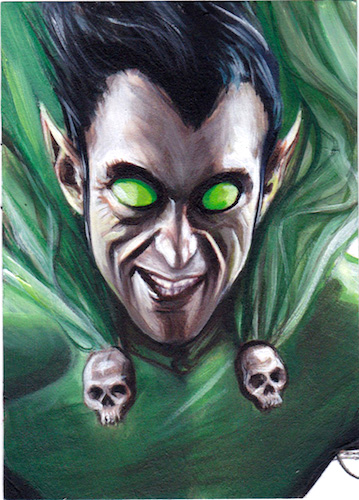 Back to the background, Nightmare is one with what we see at his back, the grasping hands of those whose minds he’s infiltrated, and the horrors he’s bestowed upon them. Green from head to toe, this artwork is hauntingly beautiful, and ought to look especially sharp in the Rainbow foil treatment.