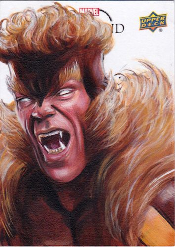 The final card of this week is none other than Wolverine’s nemesis, Sabretooth. We end with a quintessential work by the artist: muscular figure, blurred background, and that extra special something (the snow capped landscape) that makes it unique.