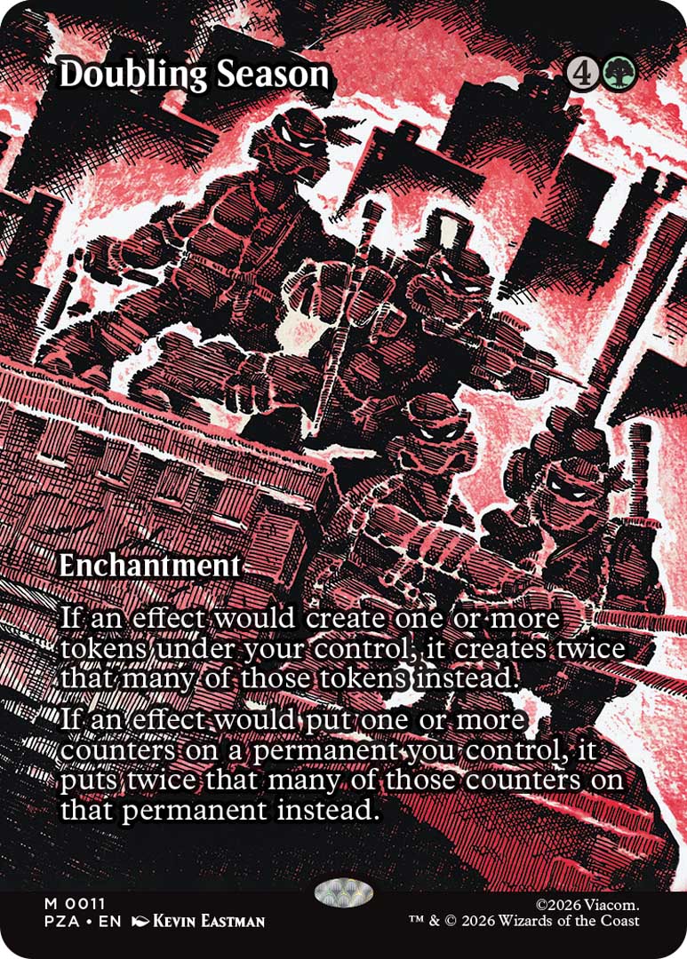 The card Turtles Forever showcases all the various multiverse incarnations, but it doesn’t stop there. There are more than a few nods to the immensely popular video games that have been released over the years, though those mostly stick to the Commander preconstructed deck.