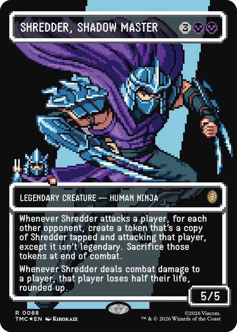 Hot on the heels of the Avatar: The Last Airbender Source Material cards which featured screenshots from the show, the TMNT ones pull from the original comics. Non foil versions can be found in Play Boosters, while traditional foils are exclusive to Collector Boosters.