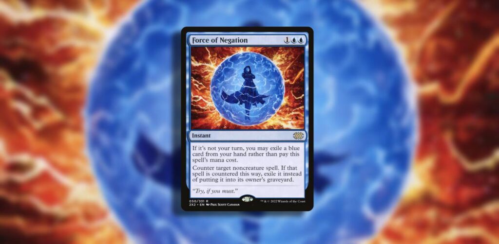 Meanwhile, Force of Negation is out because free counterspells are a no-go on Arena. Frantic Search is a bit of a combo-enabler, while Mystical Tutor can get any instant or sorcery, making it an exceptionally powerful combo piece as well. And Dark Depths lets players get an instant unstoppable 20/20 with Marit Lage, so it’s a no-go too.